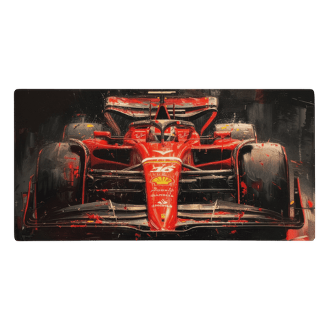 Ce tapis de souris Ferrari Formule 1 se distingue par son design frontal impressionnant. La monoplace rouge intense symbolise la puissance, la vitesse et l’héritage de la compétition automobile. Les éclats et projections autour de la voiture renforcent l’effet de mouvement et créent une immersion totale.