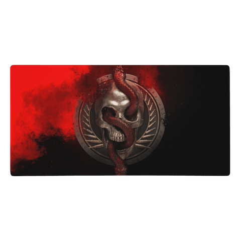 Le design Crâne Maudit attire immédiatement le regard grâce à son contraste puissant entre le noir profond et le rouge sang. Le serpent enroulé autour du crâne symbolise puissance, danger et contrôle, créant une ambiance intense idéale pour rester concentré pendant vos sessions de jeu.