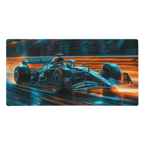 Ce tapis de souris Mercedes F1 se distingue par son visuel puissant et futuriste. La monoplace argentée et noire, en pleine accélération, symbolise la précision, l’innovation et la domination sur circuit. Les effets de vitesse et les reflets lumineux accentuent l’impression de mouvement et apportent une touche haut de gamme à votre bureau.